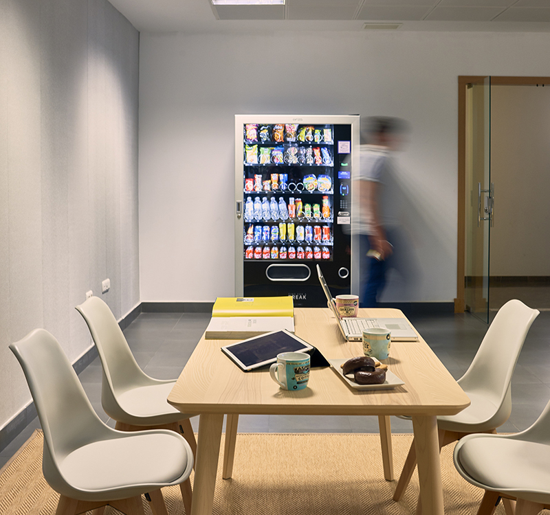 Más de 100 m2 destinados a la desconexión y el bienestar de nuestros clientes. Zona de descanso interior, Coffee Point con cocina, sillones y terraza exterior para disfrutar en un espacio afterwork. El diseño creativo de nuestros espacios comunes tiene la finalidad de inspirar y motivar, para que la desconexión favorezca la aparición de nuevas ideas, rompa los bloqueos mentales y mejore las relaciones interpersonales de los profesionales. Un área de intercambio de ideas, zonas de encuentro y trabajo compartido.